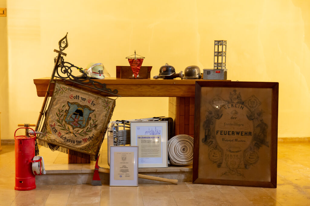 Die heutigen westlichen Stadtteile, wie z. B. Marten, gehörten bis zum Jahr 1928 nicht zu Dortmund, sondern bildeten eine eigenständige Verwaltungseinheit: das Amt Lütgendortmund. Der Bahnhof Marten entstand 1862 an dem Teilstück Langendreer–Lütgendortmund der Bergisch-Märkischen Eisenbahn-Gesellschaft. Die von den Anwohnern schlicht „Station“ genannte Haltestelle wurde schnell zum Kristallisationspunkt des wirtschaftlichen und gesellschaftlichen Lebens in den umliegenden Gemeinden Lütgendortmund, Kley, Marten und Oespel. 1875 gründete sich hier unsere Freiwillige Feuerwehr als die Erste im Dortmunder Westen. In Bahnhofsnähe entwickelten sich florierende Handwerksbetriebe, Handelsgeschäfte und zahlreiche Gastwirtschaften. Auch die Zechen Germania, von der unsere Wehr ihre erste Feuerspritze erhielt, und Borussia, später der heutige Stadtteil Kley, lag in unmittelbarer Nähe.